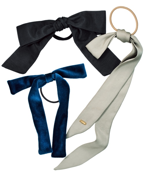 大人かわいさを印象づけられるリボン。ガーリーなファッションと相性がいいアイテムですが、シックな色のリボンなら子供っぽくならず甘さを抑えることができます。ポイントは、サテンやベロアなどの上質な素材を選ぶこと。さらにネイビーやグレーなどの落ち着きカラーならTPOを選ばず使えそう。