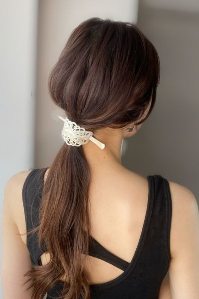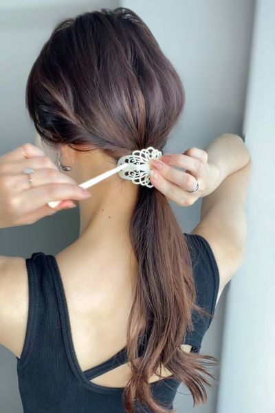 使い方は超簡単で、後ろについたフックを髪を結んだゴムに引っ掛けるだけ。生活感が出がちな黒ゴムの結び目を、ワンタッチで隠せます。