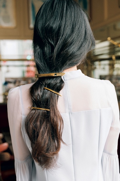 ・シンプルヘアも髪留めひとつあれば途端にこなれる