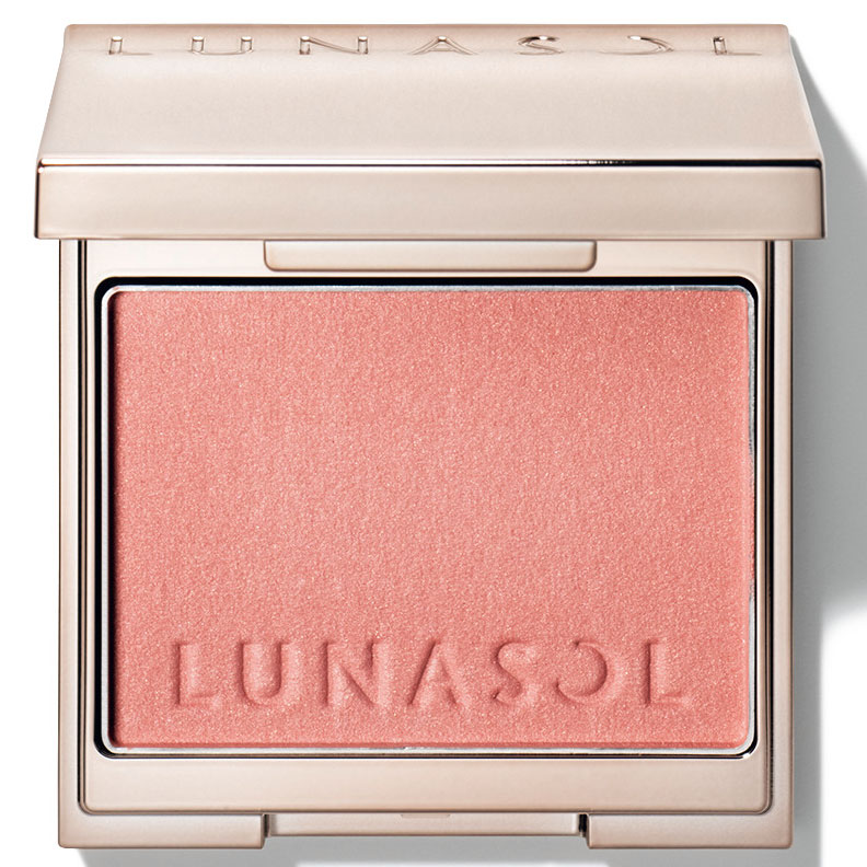 チークは膨張しない、肌なじみのいいコーラル系を選んで。クリアな発色。