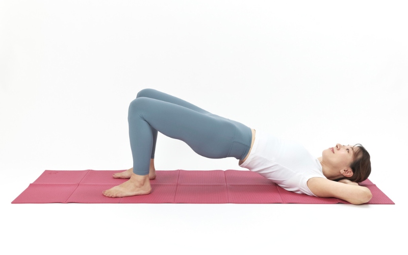 まずは、基本の「ヒップリフト」から。体の様子を見ながら、徐々に強度を上げてみてくださいね。体温が上がると、基礎代謝だけでなく免疫力もアップします。「最近、運動不足かも…」と思っている人は、おうちトレーニングのメニューに加えて、スタイルと健康維持に役立ててみませんか?