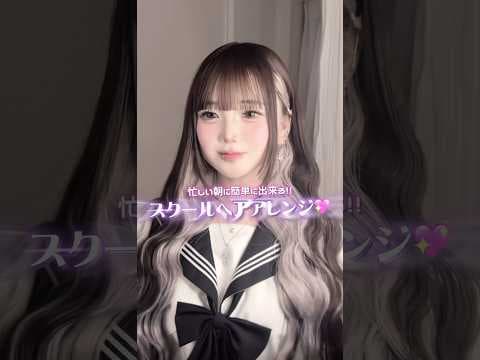 校則緩めの子にオススメなスクールへアアレンジ💖巻かずに簡単時短ヘアにも!!#ヘアアレンジ#簡単ヘアアレンジ#巻き髪#学校#制服