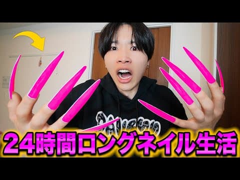 【地獄】超長いネイルで24時間生活してみた!!!